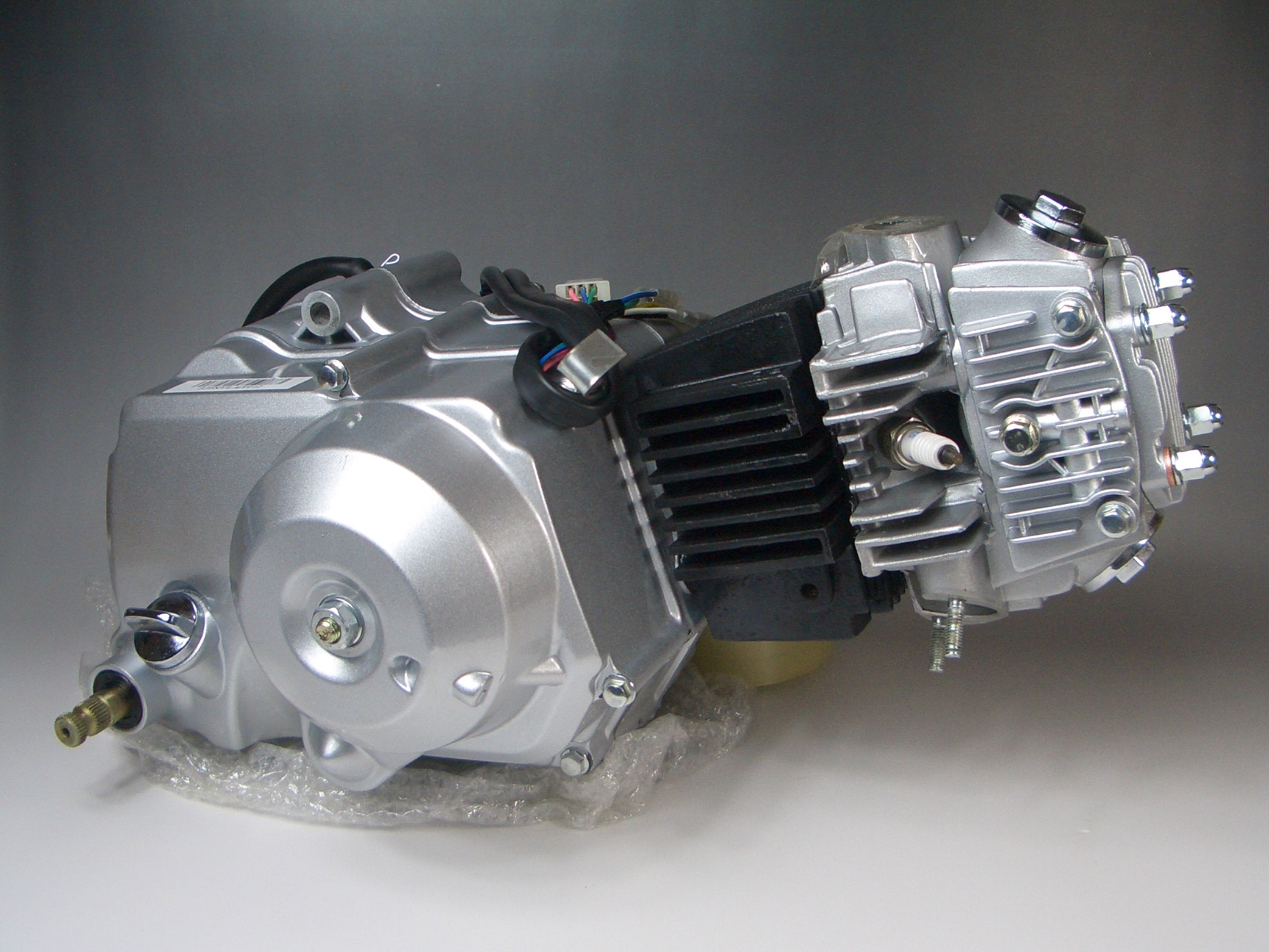 | 110ccエンジンセットセル無し(遠心クラッチ式) | 1 遠心クラッチ110ccエンジン 2 カブ専用インテークマニホールド 3 18Φキャブレター 4 フロントスプロケット16T 5 キャブレターセッティング用MJセット 6 専用スロットルケーブル |